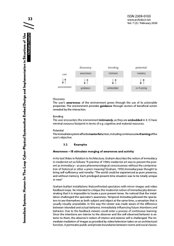 In his text Video in Relation to Architecture, Graham describes the notion of immediacy in modernist art as follows: “A premise of 1960s modernist art was to present the pres- ent as immediacy—as pure phenomenological consciousness without the contamina- tion of historical or other a priori meaning”(Graham, 1993).Immediacywas thought to bring self-sufficiency and novelty: “The world could be experienced as pure presence, and without memory. Each privileged present-time situation was to be totally unique or new.”